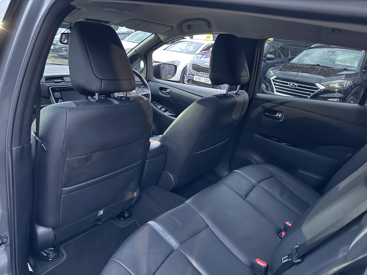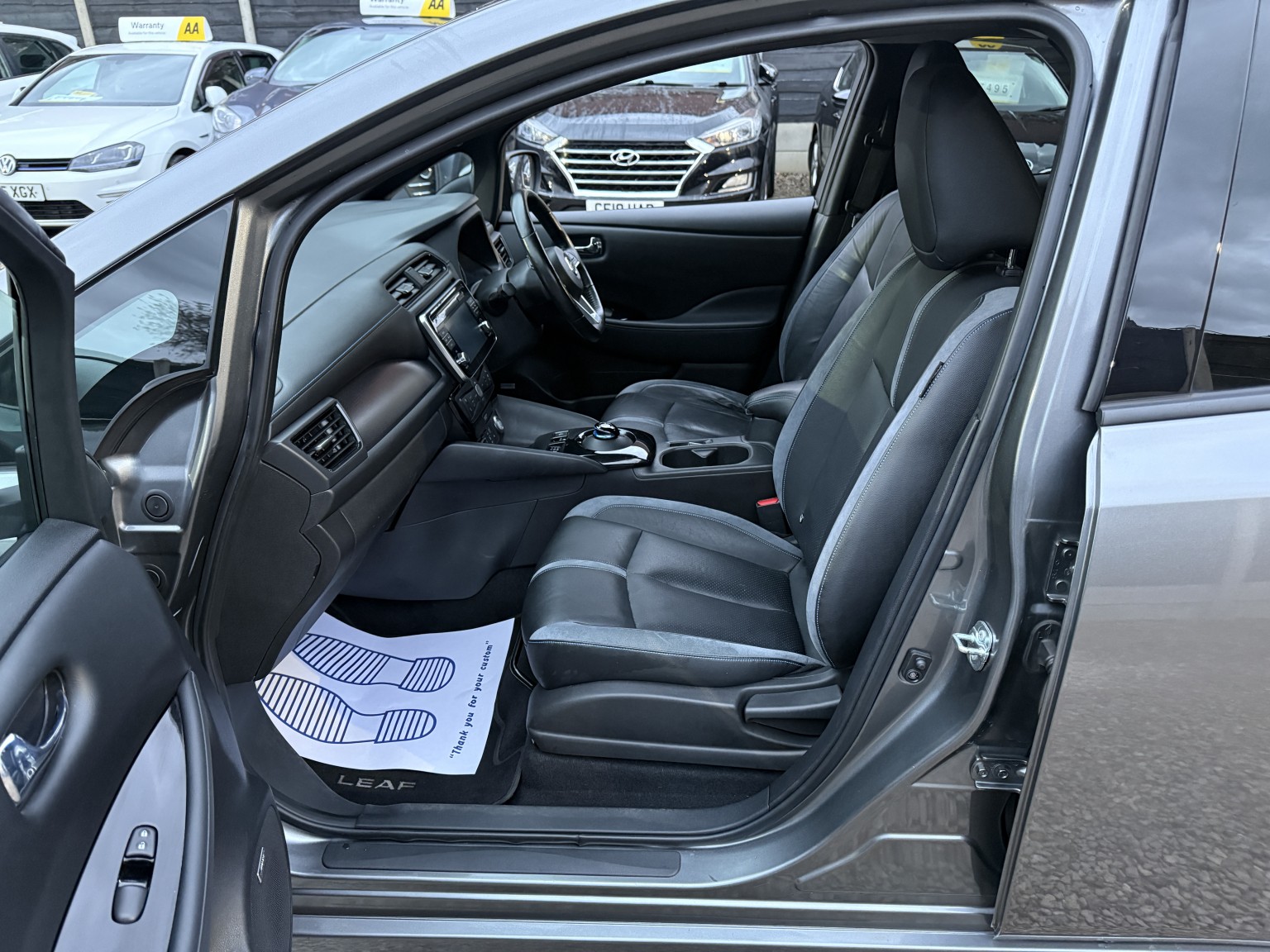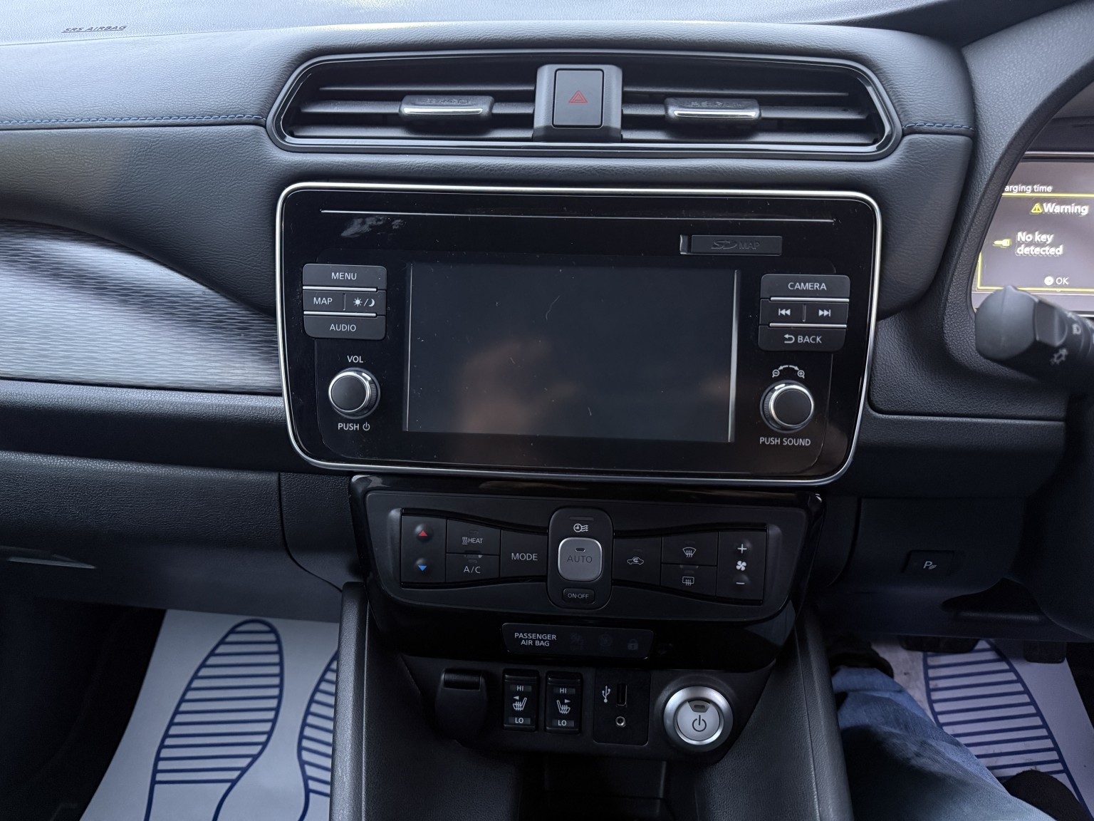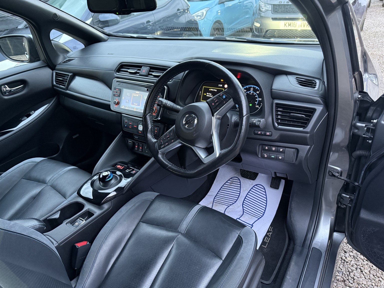 The Nissan Leaf Tekna is equipped with a suite of advanced features designed to enhance your driving experience. It includes an Around View Monitor with Moving Object Detector, providing a 360 degree camera view for effortless parking assistance, complemented by front and rear parking sensors. Stay comfortable in all seasons with heated front and rear seats and a heated steering wheel. Connectivity is seamless thanks to the Nissan Connect 2 Kai2 Navi system, featuring DAB radio, Apple CarPlay, and Android Auto. Intelligent Cruise Control adapts to traffic, while the generous boot space nsures practicality for everyday needs and longer journeys, setting it apart from other vehicles in its class.
