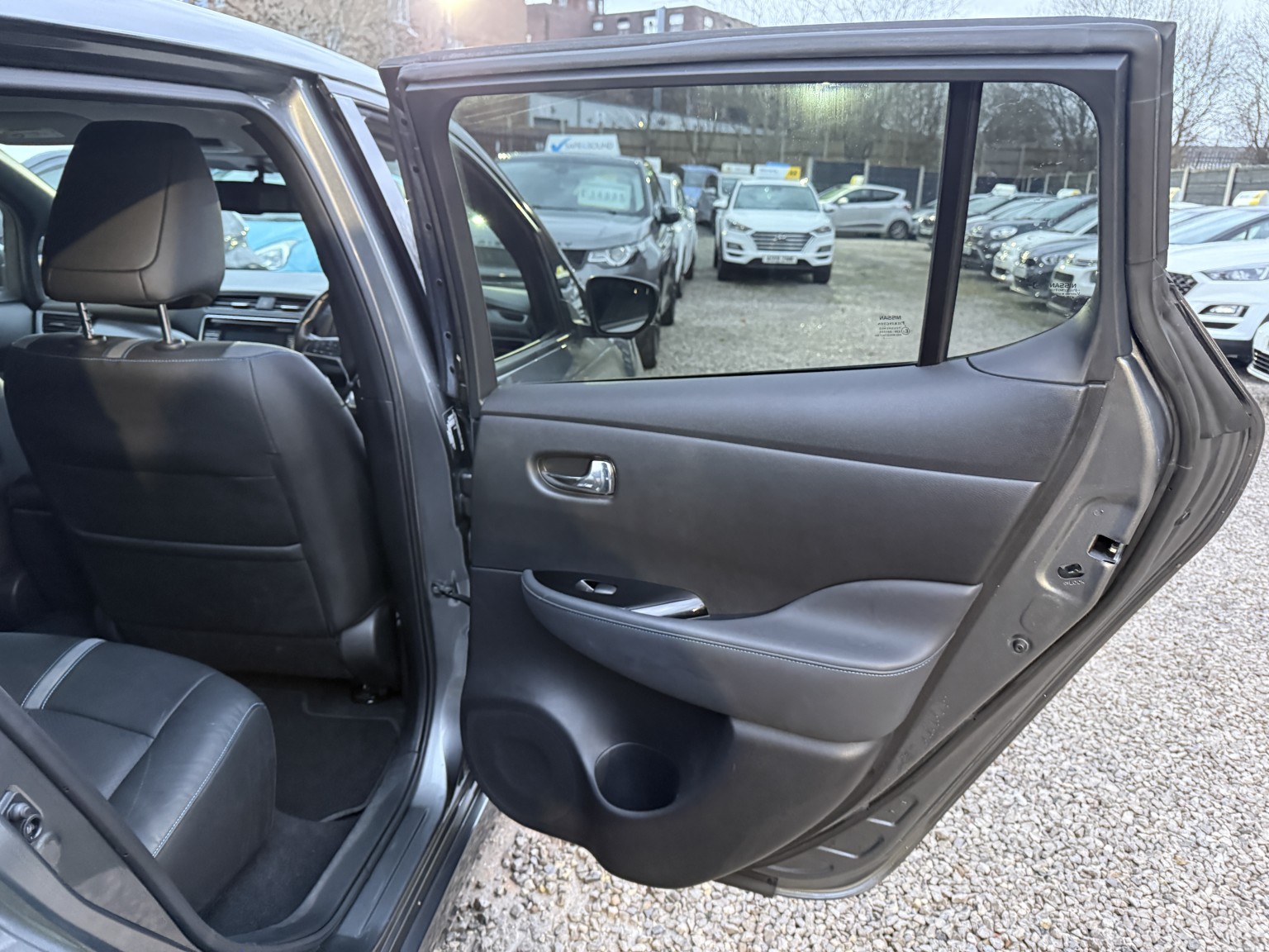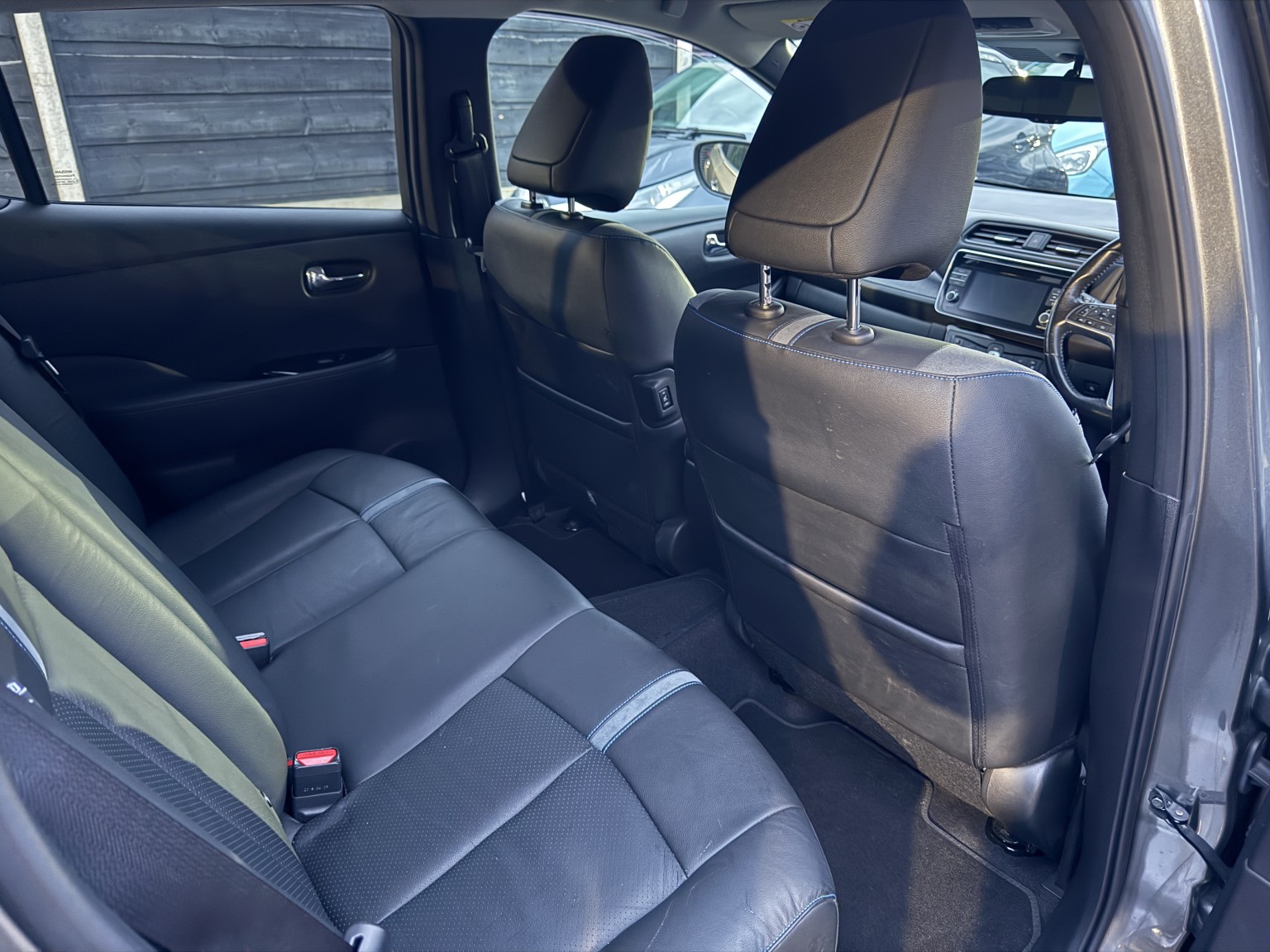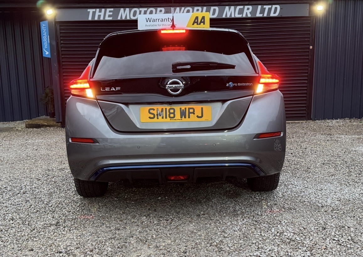 The Nissan Leaf Tekna is equipped with a suite of advanced features designed to enhance your driving experience. It includes an Around View Monitor with Moving Object Detector, providing a 360 degree camera view for effortless parking assistance, complemented by front and rear parking sensors. Stay comfortable in all seasons with heated front and rear seats and a heated steering wheel. Connectivity is seamless thanks to the Nissan Connect 2 Kai2 Navi system, featuring DAB radio, Apple CarPlay, and Android Auto. Intelligent Cruise Control adapts to traffic, while the generous boot space nsures practicality for everyday needs and longer journeys, setting it apart from other vehicles in its class.