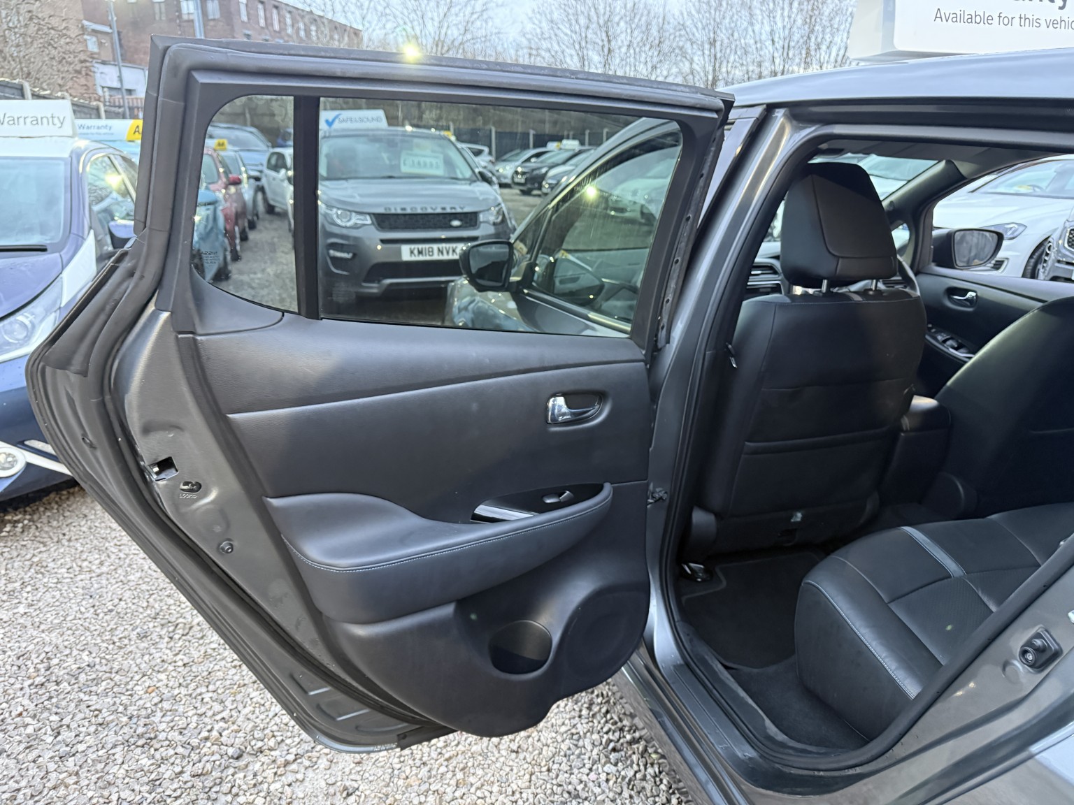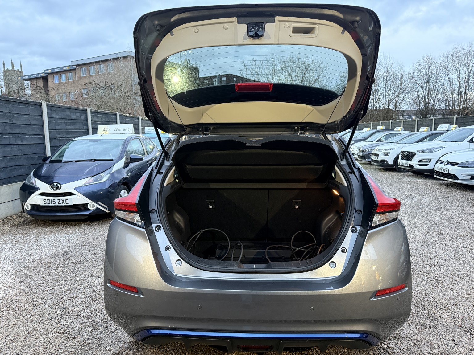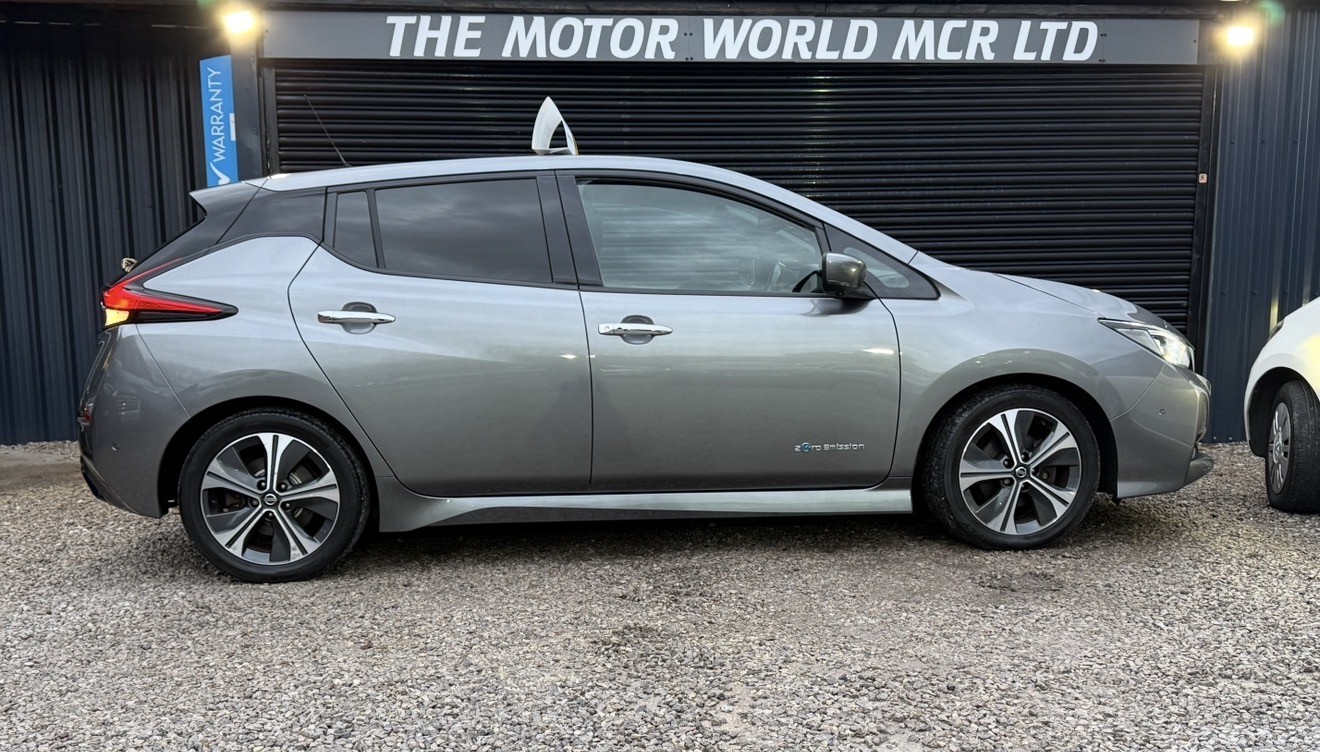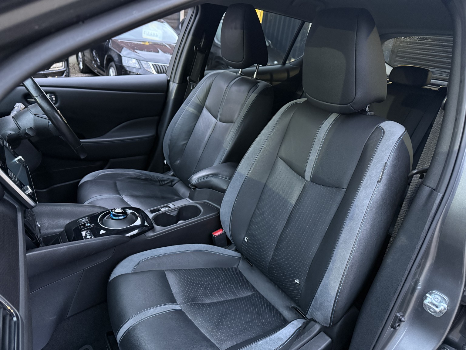 The Nissan Leaf Tekna is equipped with a suite of advanced features designed to enhance your driving experience. It includes an Around View Monitor with Moving Object Detector, providing a 360 degree camera view for effortless parking assistance, complemented by front and rear parking sensors. Stay comfortable in all seasons with heated front and rear seats and a heated steering wheel. Connectivity is seamless thanks to the Nissan Connect 2 Kai2 Navi system, featuring DAB radio, Apple CarPlay, and Android Auto. Intelligent Cruise Control adapts to traffic, while the generous boot space nsures practicality for everyday needs and longer journeys, setting it apart from other vehicles in its class.
